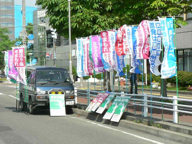 公示日が過ぎると、拡声器での宣伝は標記のある場所でないとできません。