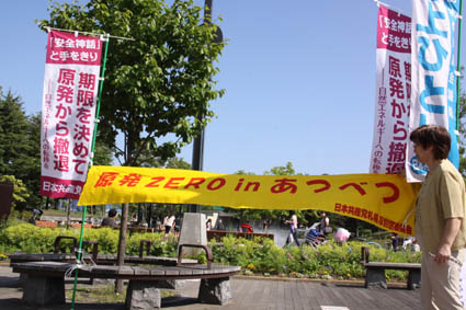 7月1日、2回目の原発「ZERO in あつべつ」には7人の参加者が集まりました。前回が3人だったので寂しい思いをしましたが、回を重ねるごとに増えていけばうれしいですね。