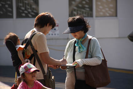 暑い日だったので科学館公園の噴水では、小さなお子さんたちがたくさん遊んでいました。署名には、子ども連れのお母さん、小学生から高齢者の皆さんと幅広い方々にご協力いただきました。