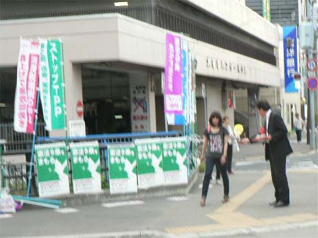 や、のぼりをたくさん立てて街頭でのビラ配布