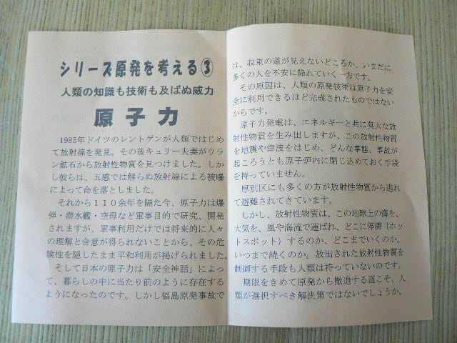 そして日本の原子力は「安全神話」によって、暮らしの中に当たり前のように存在するようになったのです。しかし福島原発事故では、収束の道が見えないどころか、いまだに多くの人を不安に陥れていく一方です。