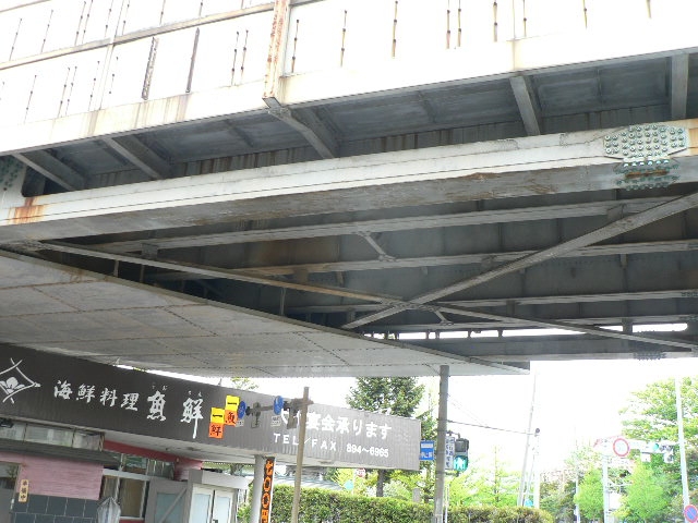 札幌から千歳線、JR新札幌駅直前の国道12号線上の高架から、かなりの勢いで水が滴り落ちてきます。